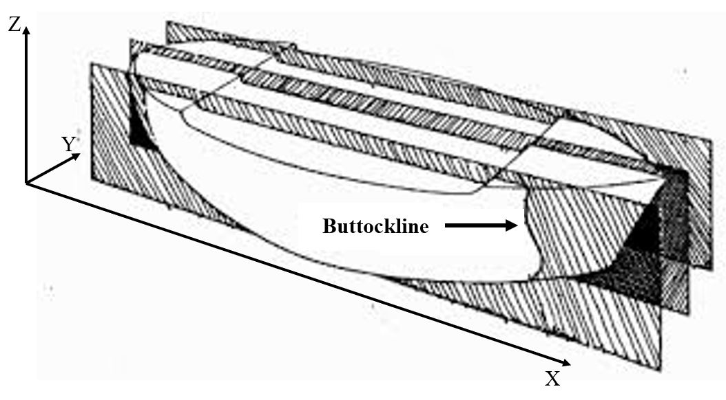Figure No. 1: Ship hull cut by buttocklines. [1]